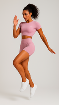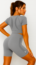 Deze korte sportlegging is gemaakt van middelmatig elastisch ribtricot dat zacht aanvoelt op de huid en subtiel geometrisch textuurwerk laat zien. Dankzij de buikondersteunende tailleband biedt het extra stabiliteit tijdens je training, zonder in te leveren op comfort.