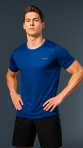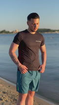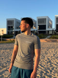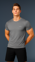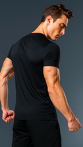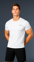 De minimalistische effen afwerking, gecombineerd met een ronde hals en een tailored fit, benadrukt de mannelijke vorm zonder overdaad. Discreet maar onmiskenbaar aanwezig – dit is sportieve elegantie, heruitgevonden.